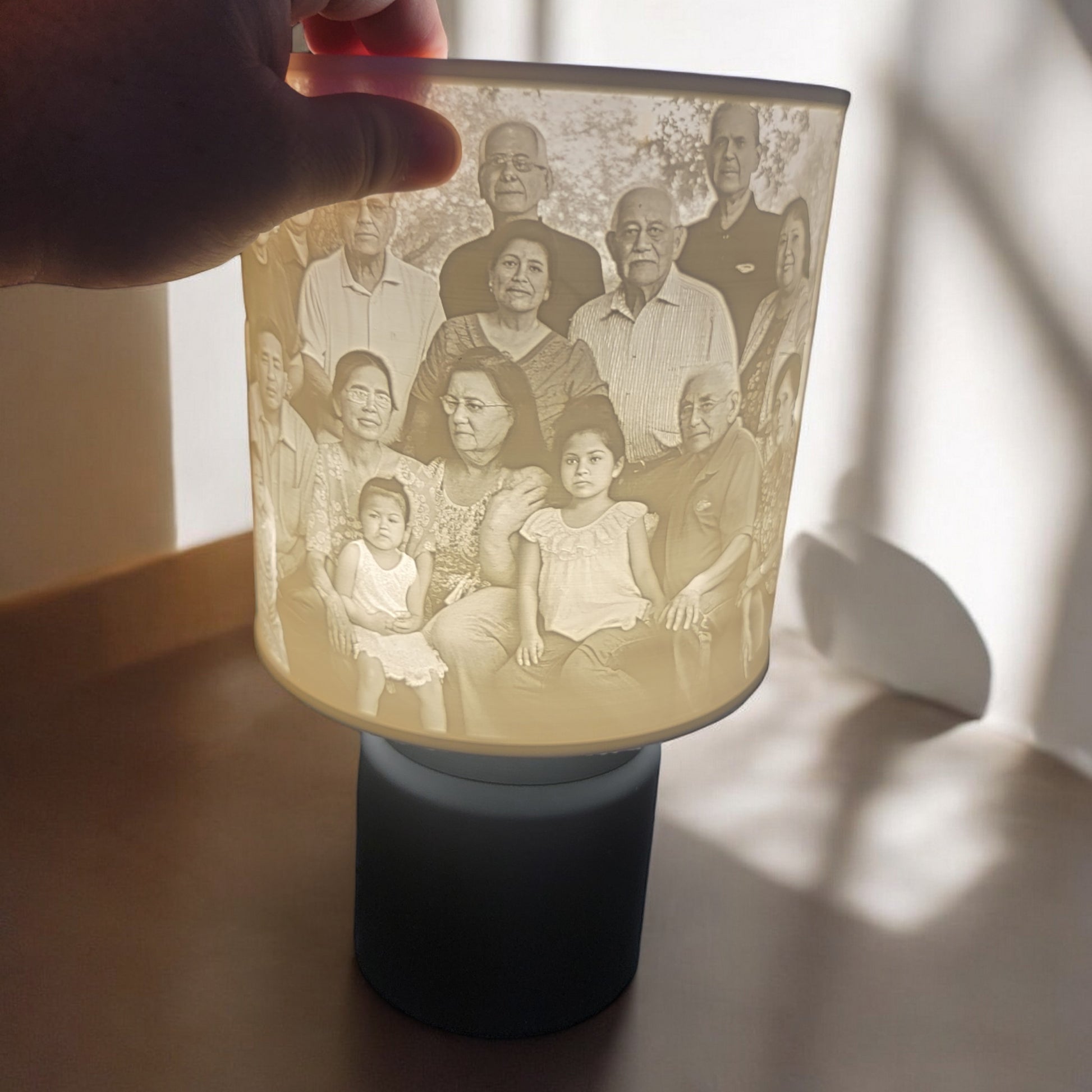 The Cylinder Lithophane is a beautifully crafted, easily interchangeable shade that brings a personal touch to your lamp. Made to fit seamlessly onto the lamp base without the need for screws, it allows you to effortlessly switch designs whenever you desire. Whether you want to display a cherished family photo, a favorite landscape, or any image that holds special meaning, these custom lithophanes offer a unique way to illuminate your space with personalized art. Order extras to keep your decor fresh and meaningful throughout the year.