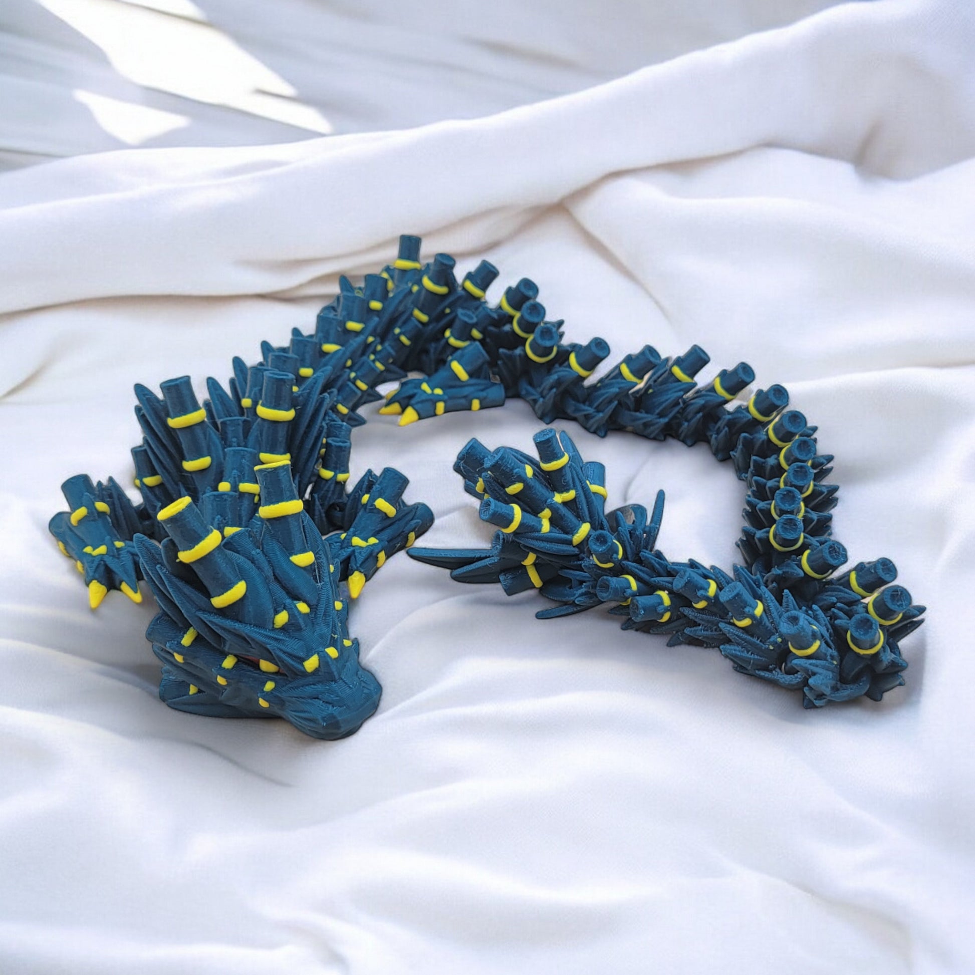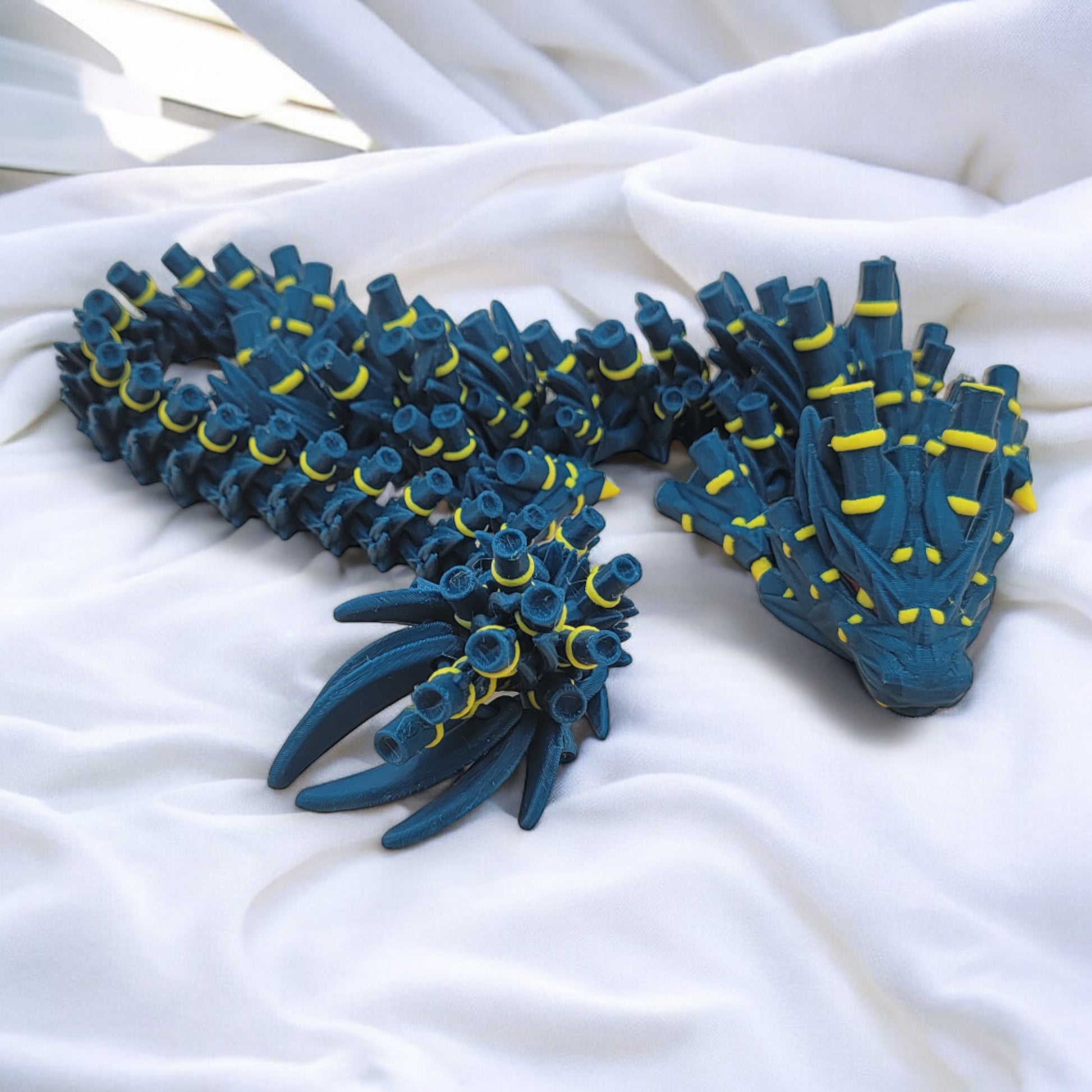 Introducing the Bamboo Dragon, a 3D-printed masterpiece that blends the elegance of nature with the mystique of fantasy. This articulated dragon is adorned with intricate bamboo stalk details, creating a striking fusion of organic and mythical design elements. The Bamboo Dragon's movable joints allow for dynamic posing, making it a versatile piece for both display and interaction.