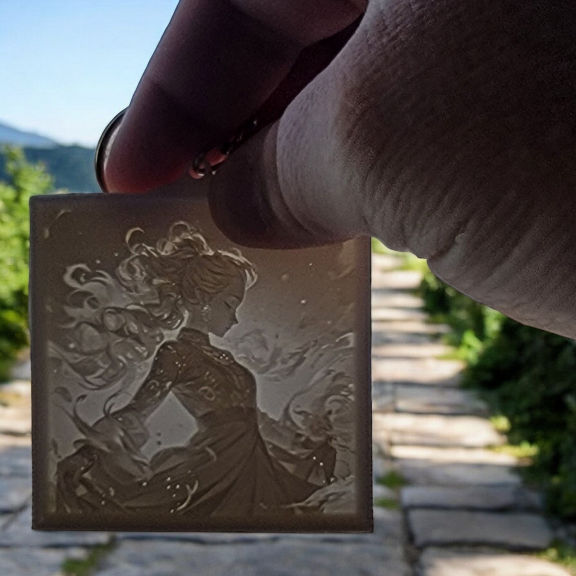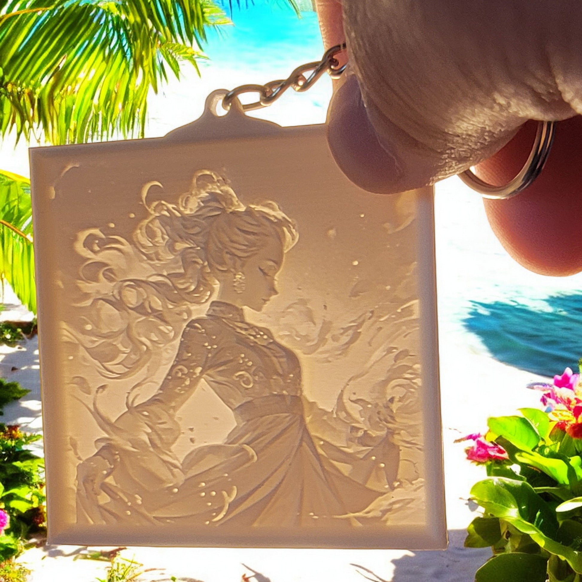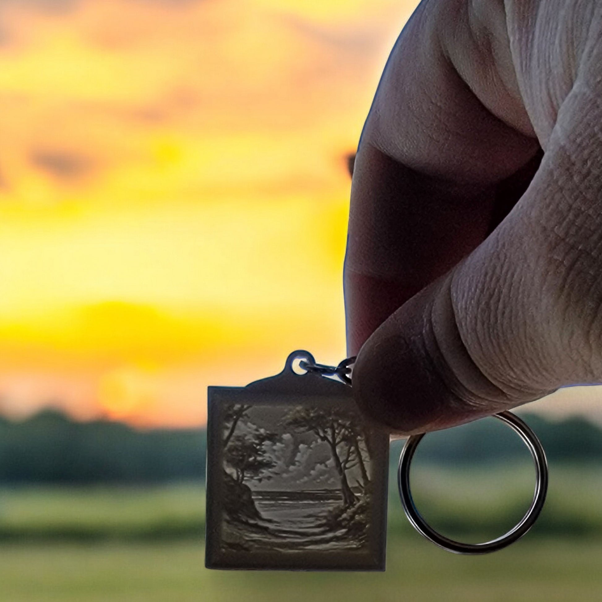 Introducing the Lithophane Keychain—available in two convenient sizes, 30mm (1.18 inches) or 60mm (2.36 inches). These keychains are a stunning way to carry a piece of personalized art with you wherever you go. When held up to the light, the intricate designs beautifully illuminate, revealing the detailed lithophane image, while in the absence of light, they maintain a sleek, solid white appearance. Perfect for adding a touch of elegance to your keys or as a thoughtful gift, these lithophane keychains are both practical and visually captivating.