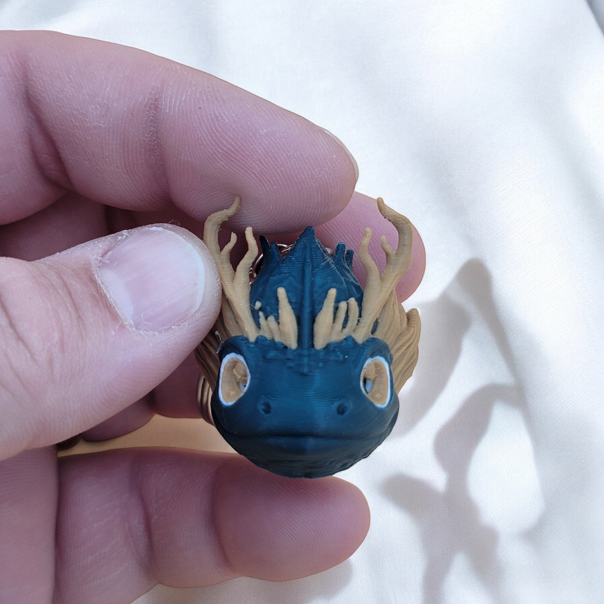 This little leaf baby dragonhead keychain brings a touch of the forest to your everyday carry. With its unique antler-like horns and a beautifully detailed face, this keychain is a perfect companion for nature lovers and fantasy enthusiasts alike. The design captures the essence of a dragon that might be found hidden among the leaves, blending in with its natural surroundings.